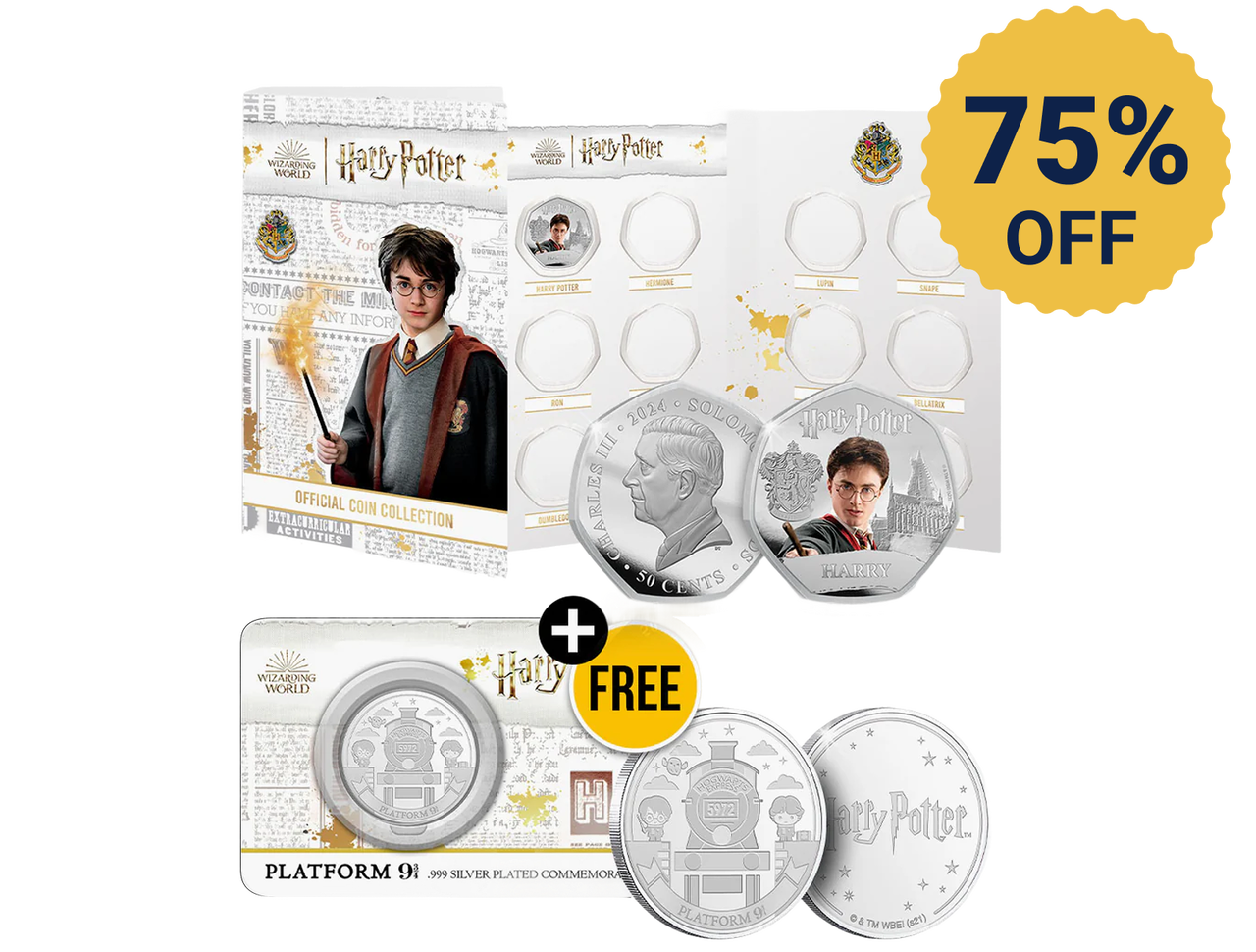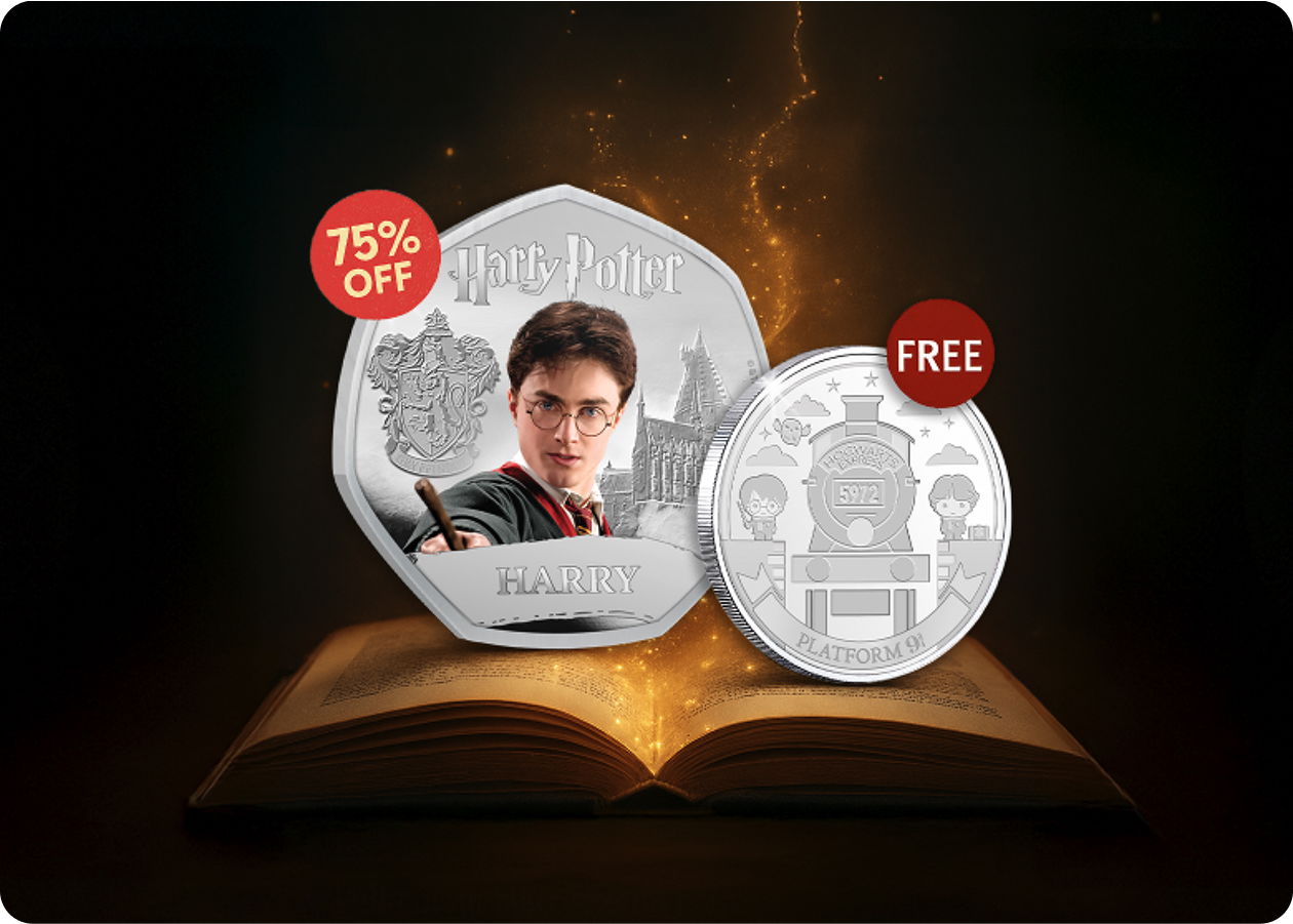 Begin your magical collection today with the Officially Licensed Harry Potter Coin, + a FREE Platform 9¾ Coin.