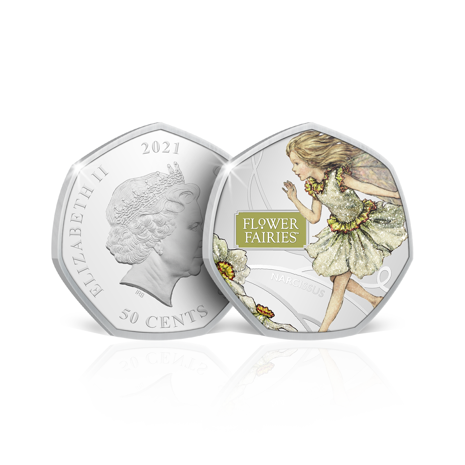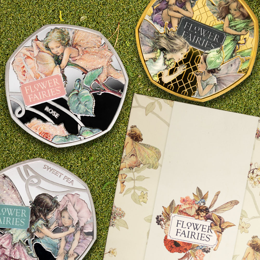 Each coin showcases delicate, full-colour depictions of individual fairies.