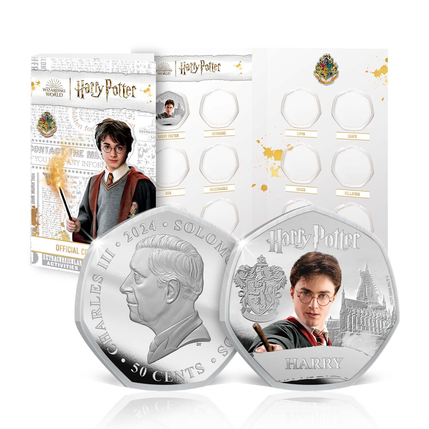 Each coin features vibrant, officially licensed images of Harry Potter characters.