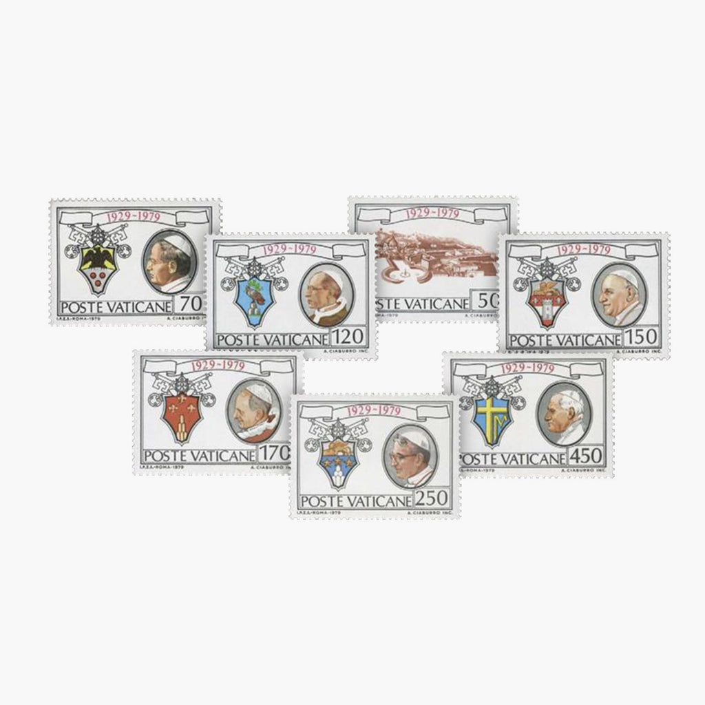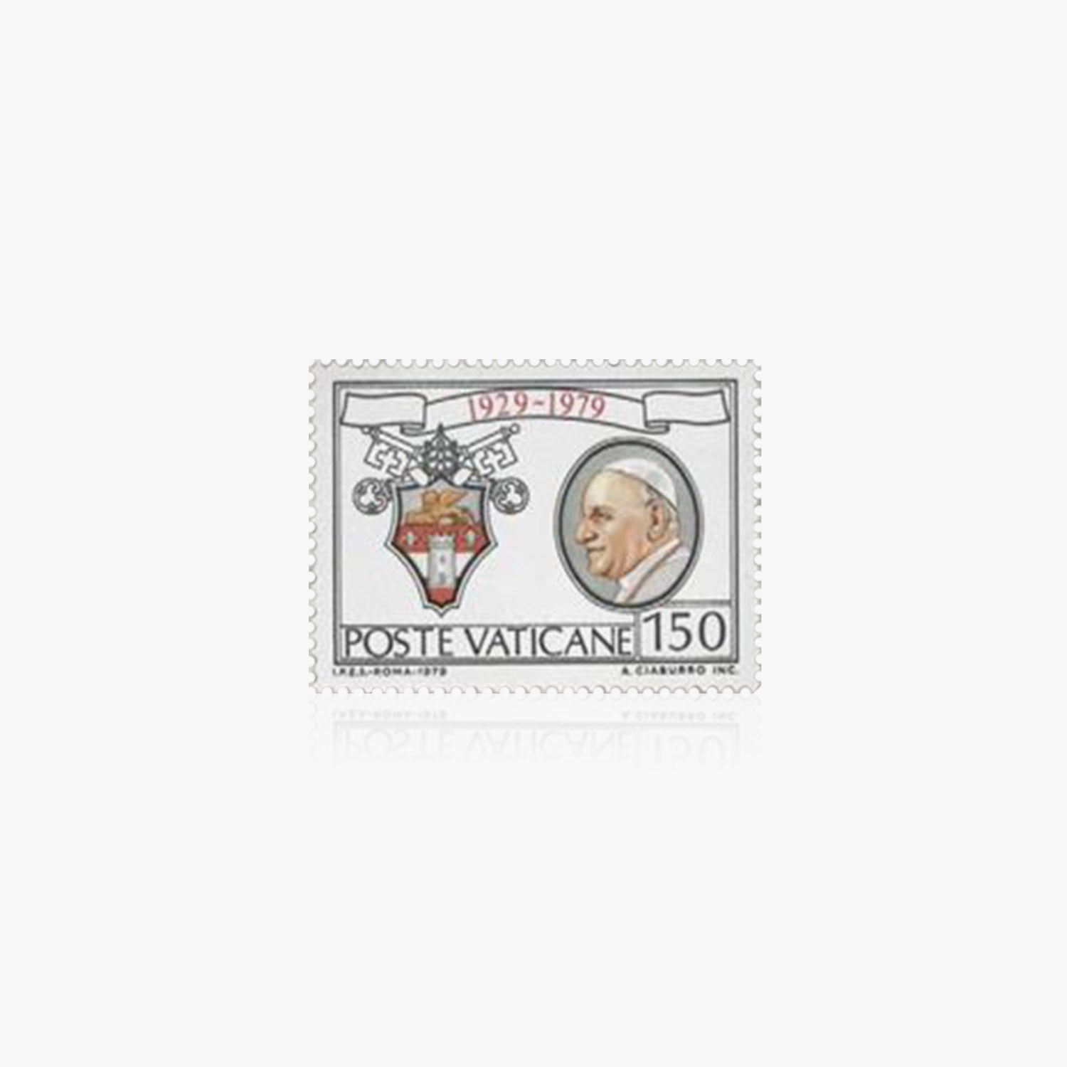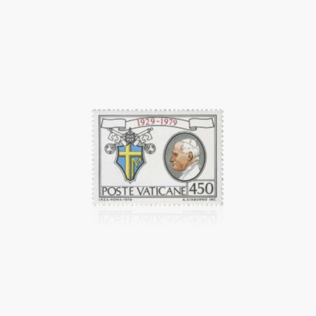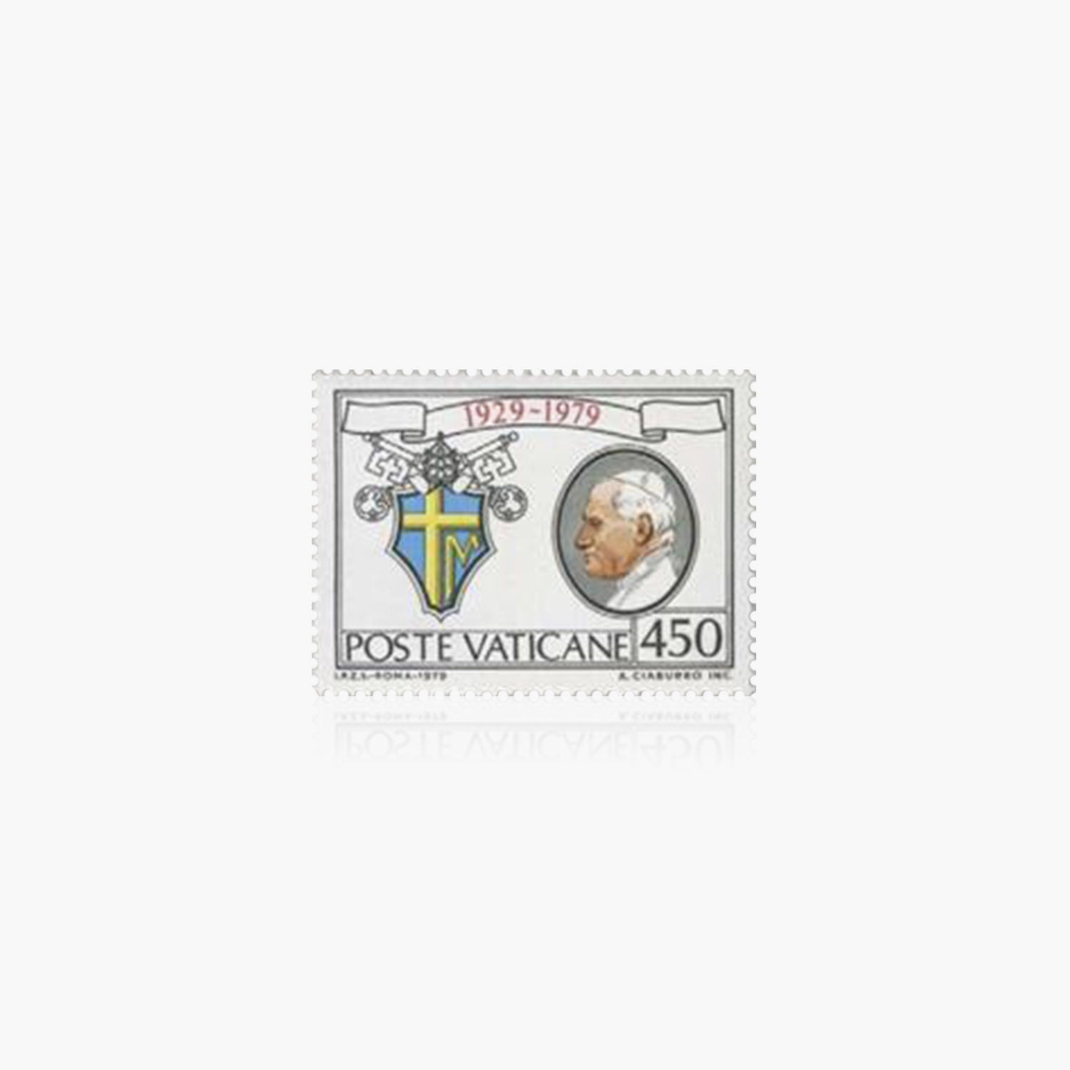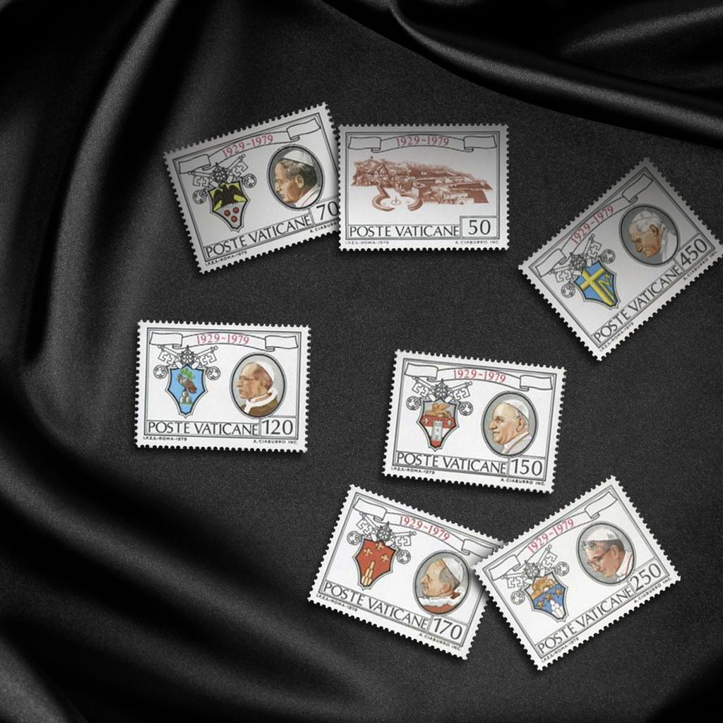 Issued in 1979 under Pope John Paul II, this historic stamp set commemorates the 50th anniversary of the Lateran Treaty, the agreement that resolved the long-standing "Roman Question" and established Vatican City as an independent sovereign state.