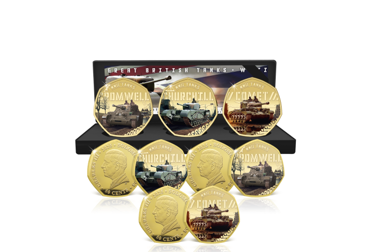 Three iconic coins. A collector’s tribute to the Churchill Tank, available in one exclusive boxset.