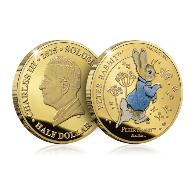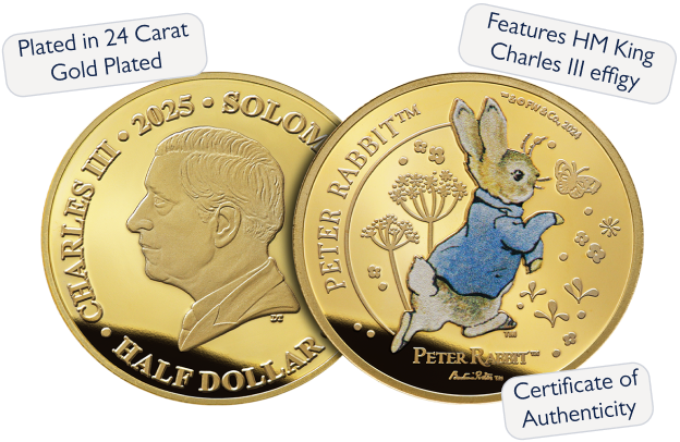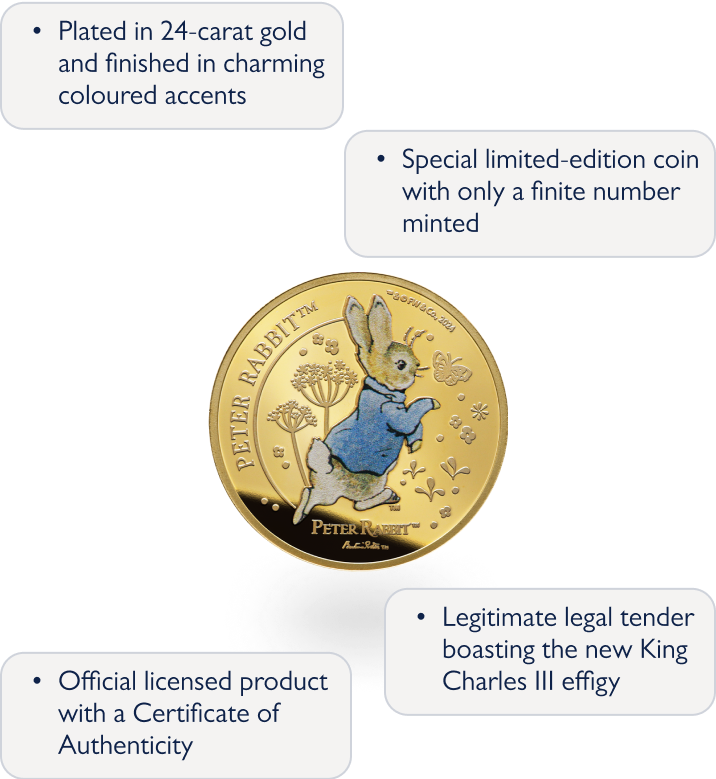 Turn your free coin into a premium gold-plated Peter Rabbit coin with charming colour accents. Limited time offer – ends soon.