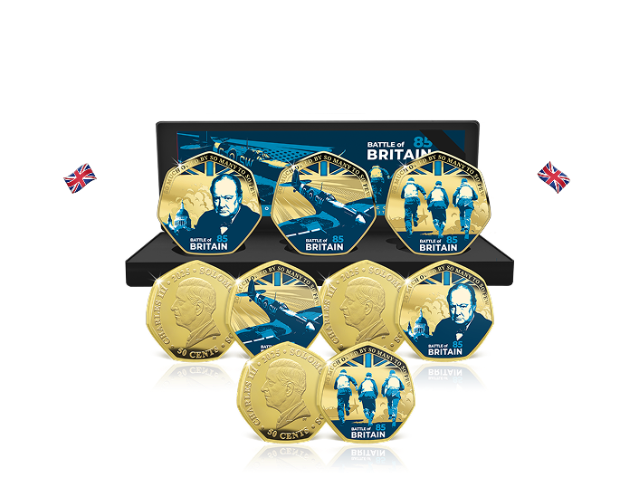 A premium set of three gold-plated coins commemorating Britain’s finest hour.