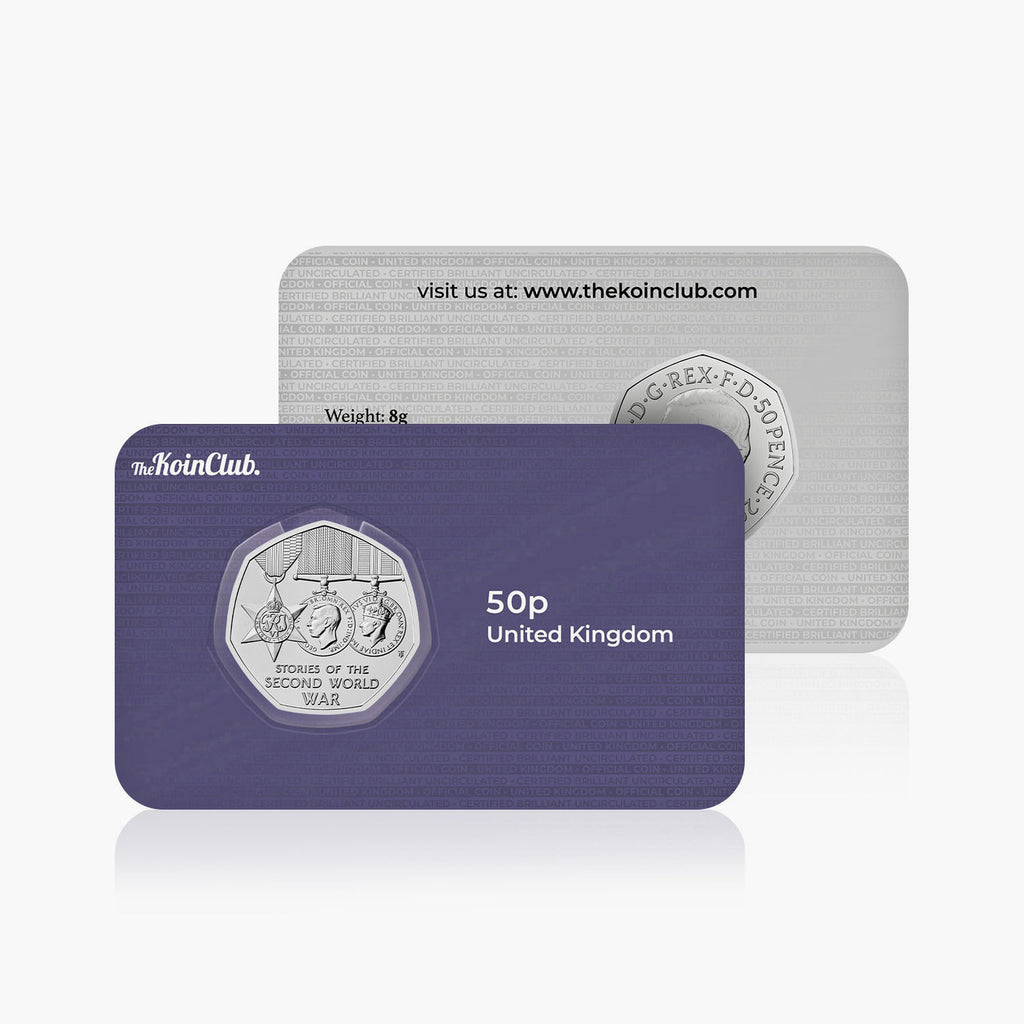 Honouring the triumphs and sacrifices of the Second World War, this 50p coin’s design captures the resilience, unity and achievements of the war effort that helped shape the modern world.