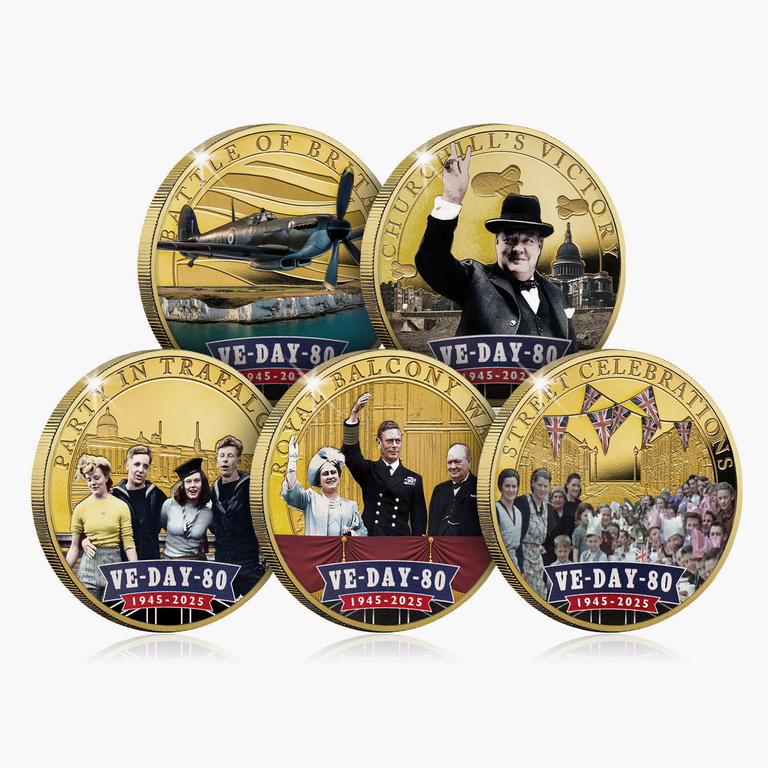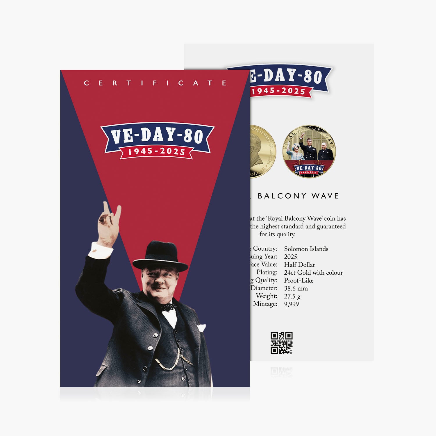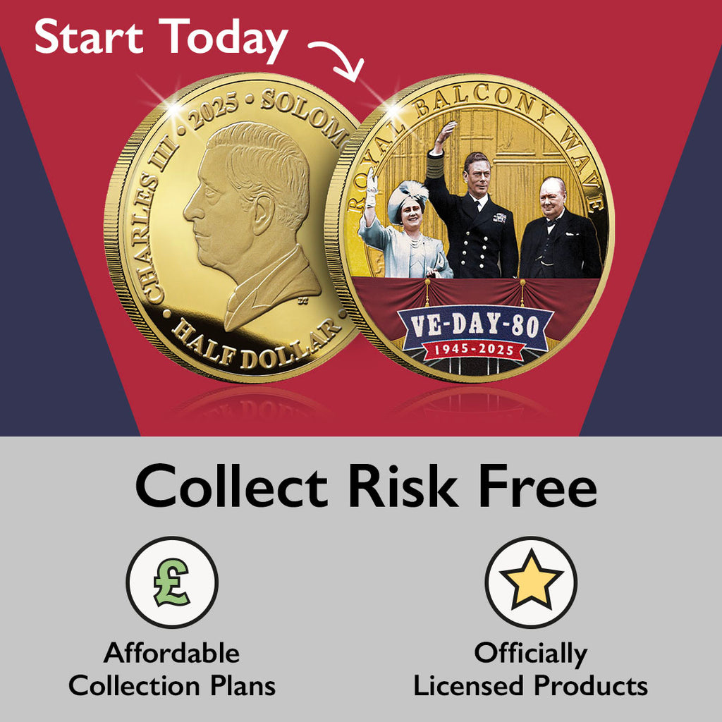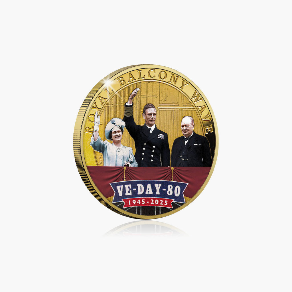 With each monthly delivery, you will receive a beautifully crafted, 24 carat gold plated legal tender coin featuring a different iconic scene from VE Day. From the Battle of Britain to Churchill’s victory, street celebrations, the party in Trafalgar Square, and the royal balcony wave, each coin captures a unique moment of triumph and unity. Accompanied by a certificate of authenticity, every coin is a lasting tribute to this historic occasion.