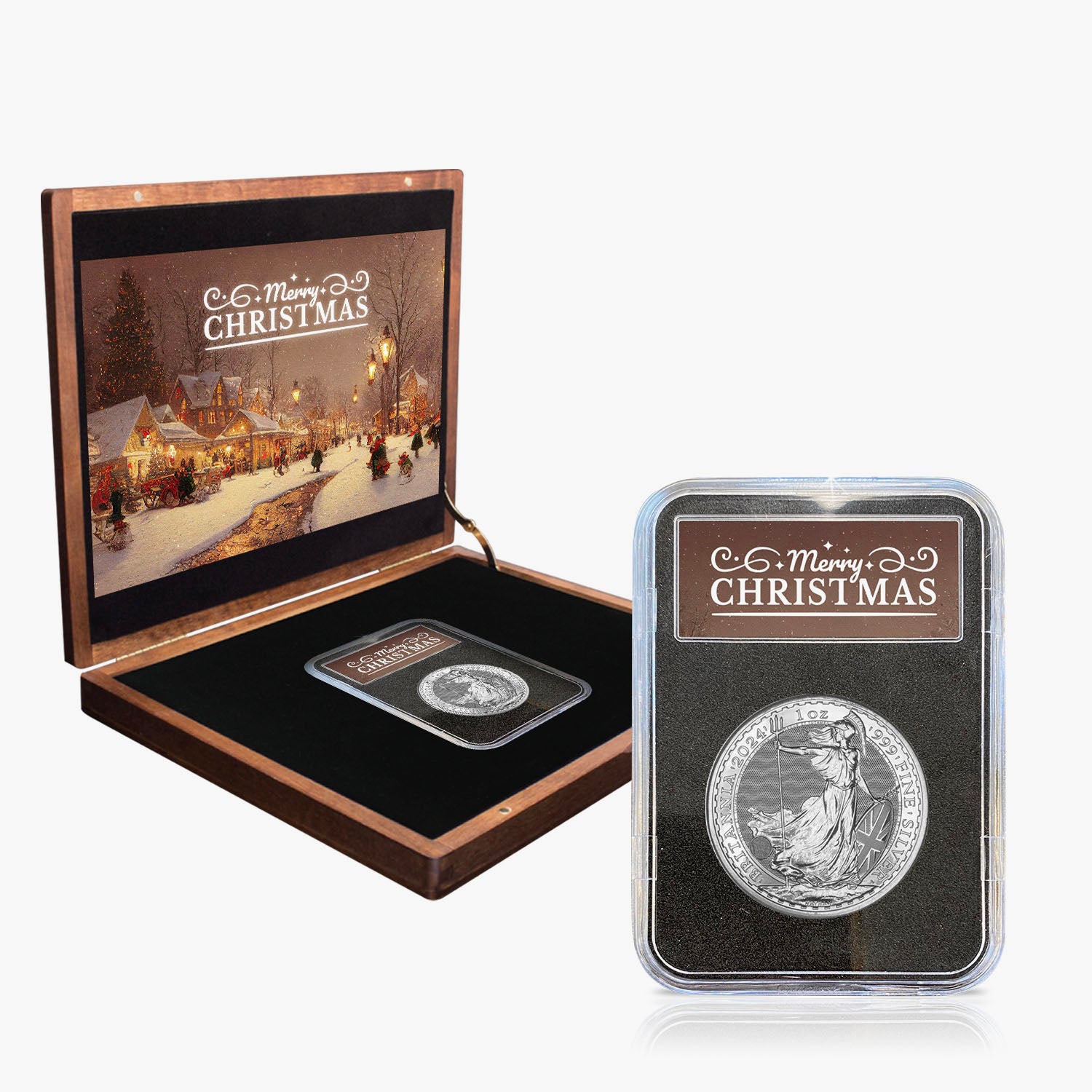 Celebrate the magic of Christmas with this exquisite Britannia coin — a shining tribute to the enduring values of tradition and joy.