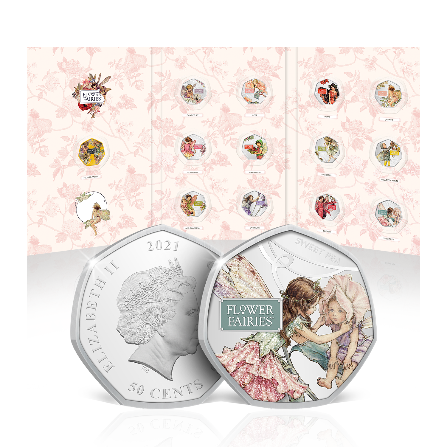 Each coin showcases delicate, full-colour depictions of individual fairies.