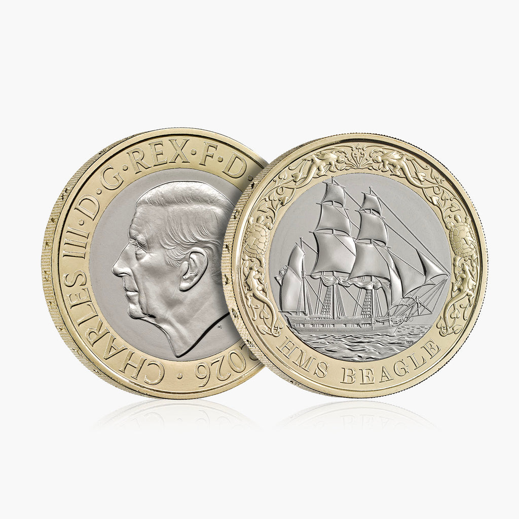Two £2 coins highlight landmark moments of exploration and discovery. The HMS Beagle £2 Coin commemorates the historic vessel made famous by Charles Darwin’s voyage, symbolising scientific curiosity and a pivotal chapter in global understanding. The Zoological Society of London £2 Coin celebrates 200 years of the ZSL, recognising its contribution to wildlife conservation, research and the protection of species worldwide.