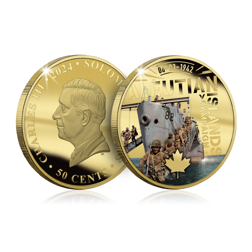 Canada in WWII - Aleutian Island Campaign Gold Plated Coin