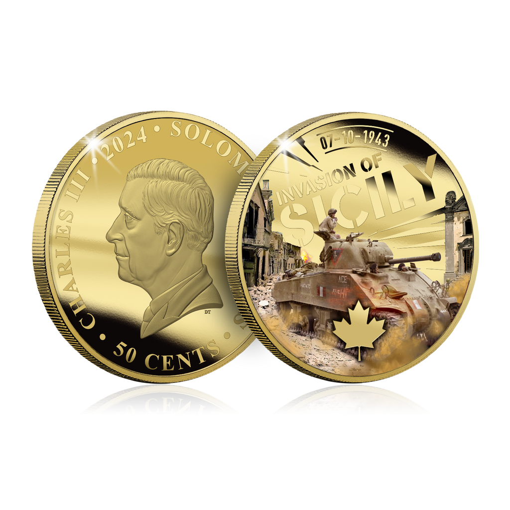 Canada in WWII - Invasion Of Sicily Gold Plated Coin