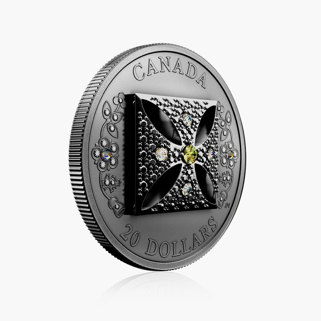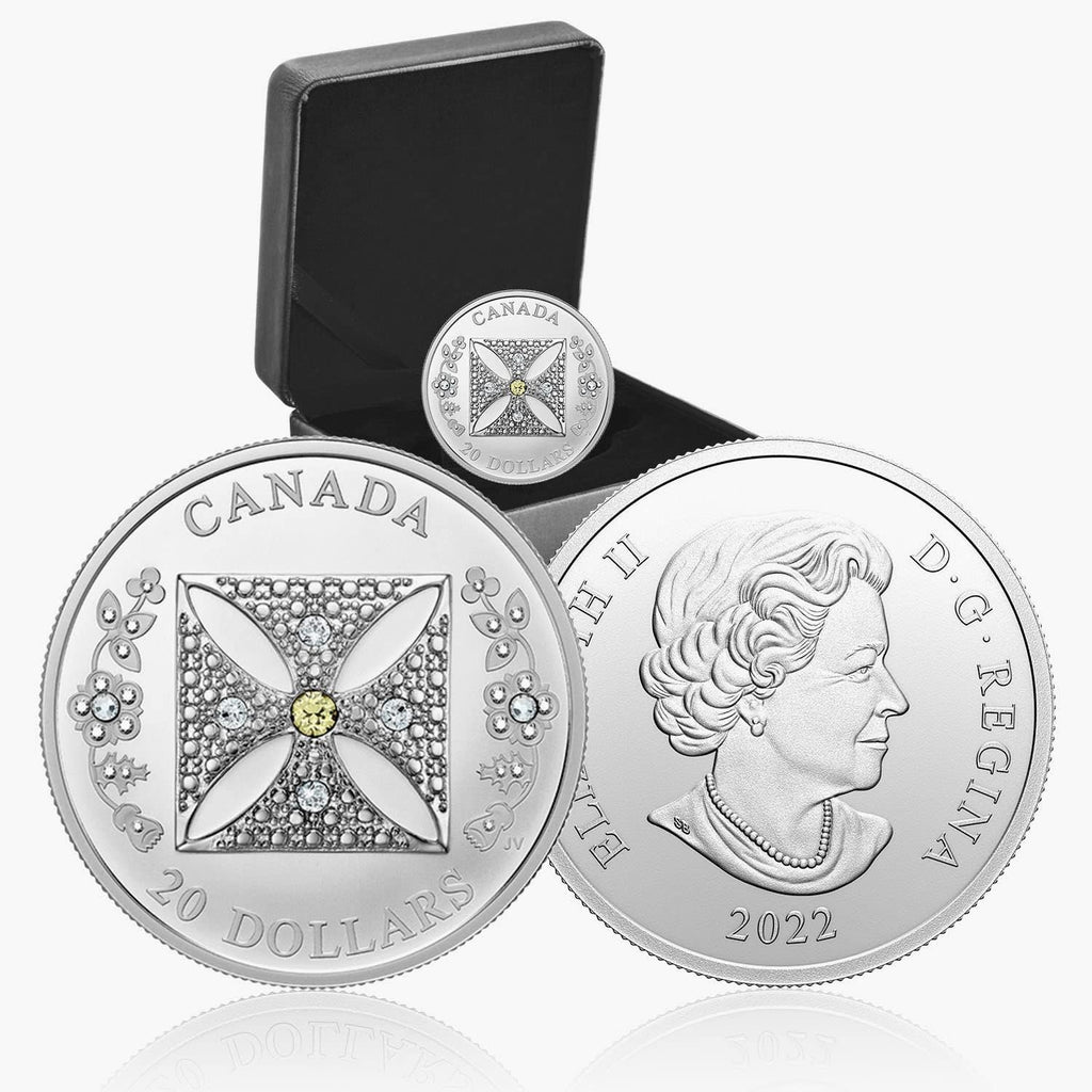 To honour this historic Jubilee, the Royal Canadian Mint has issued a $20 pure silver coin featuring a detailed depiction of the Diamond Diadem, enhanced with sparkling Swarovski crystals. Designed by artist Jori Van der Linde, the coin also includes a serrated edge finish.