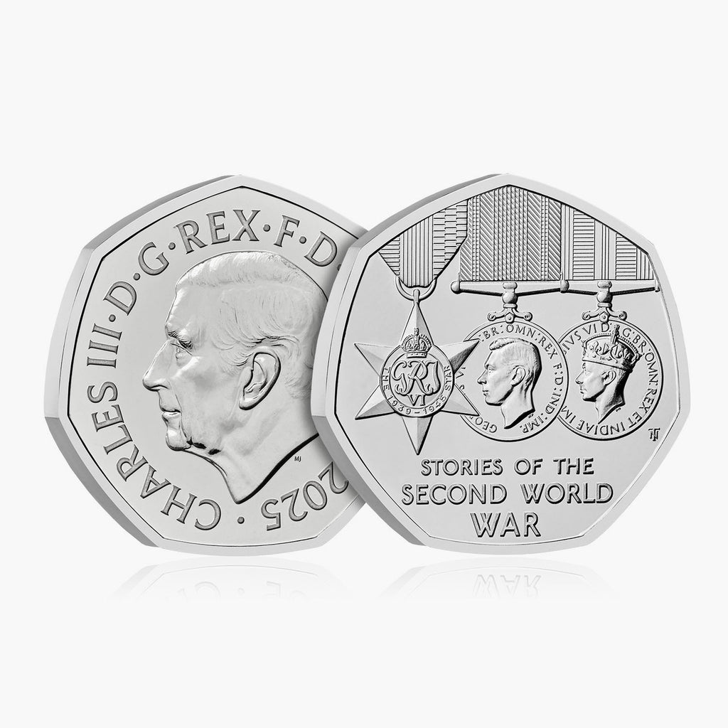 Honouring the triumphs and sacrifices of the Second World War, this 50p coin’s design captures the resilience, unity and achievements of the war effort that helped shape the modern world.