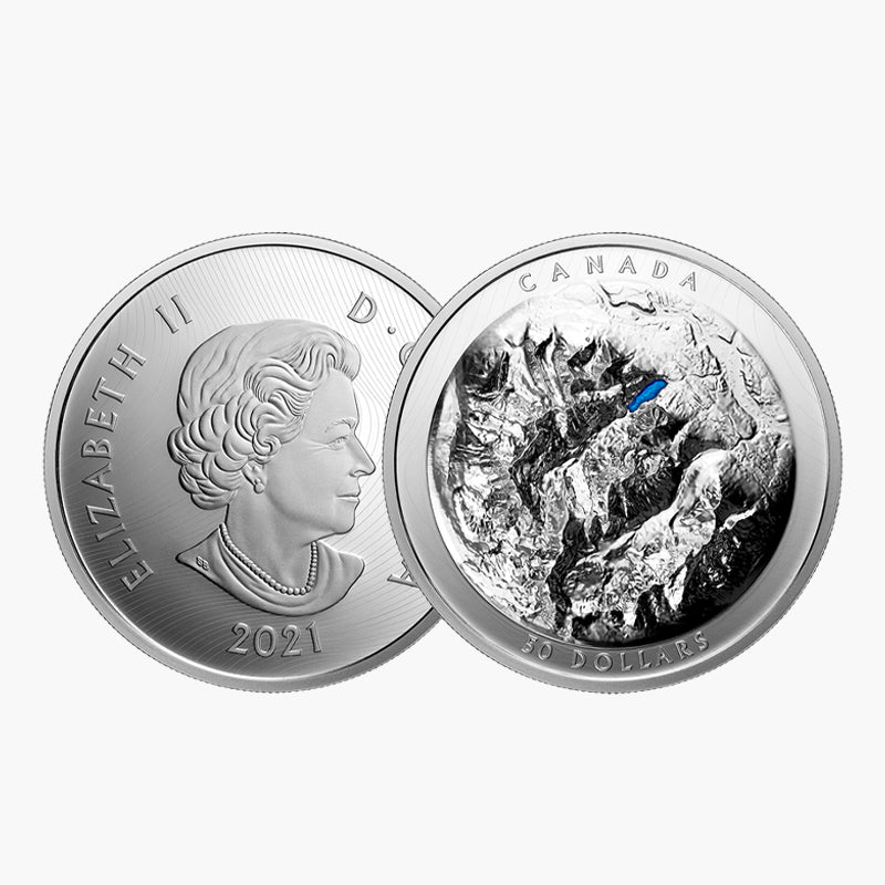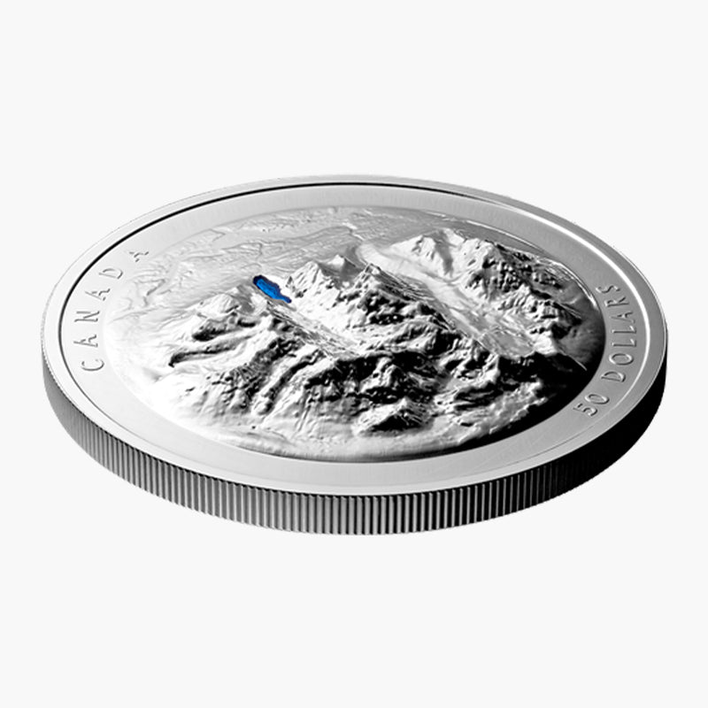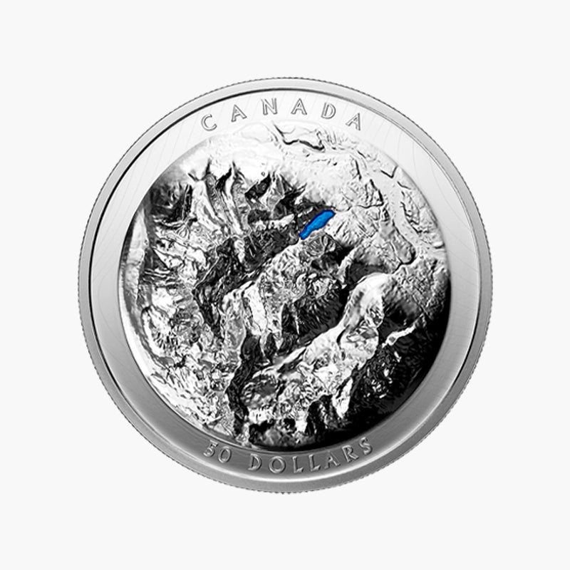 This iconic national treasure is depicted quite specially on this Stunning Pure Silver $50 Coin, showcasing the beauty of the Lake Louise National Park with a splendid raised high definition design on the reverse of this coin, portraying a sort of three-dimensional look. Furthermore, the reverse of this coin is partially coloured with the Lake highlighted in blue.