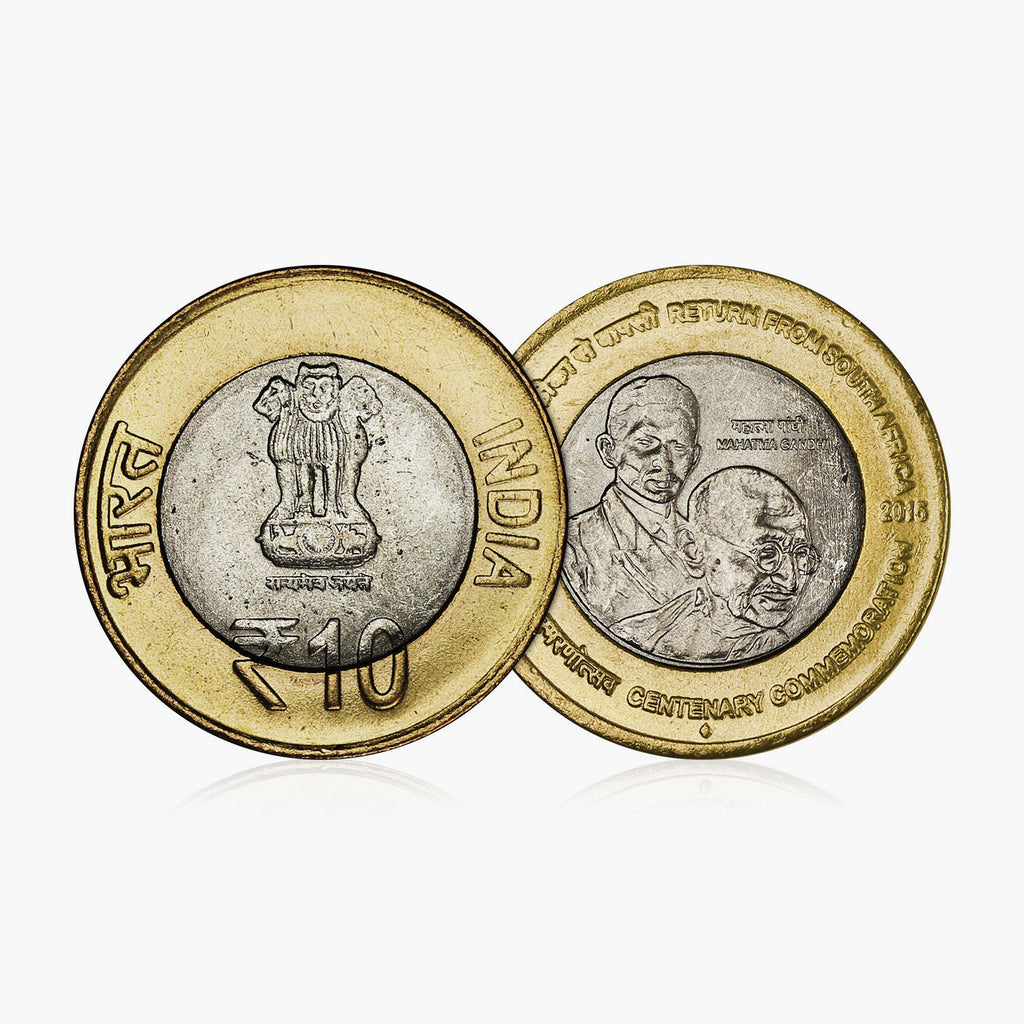 - Bimetallic coin celebrating Gandhi's return from Africa