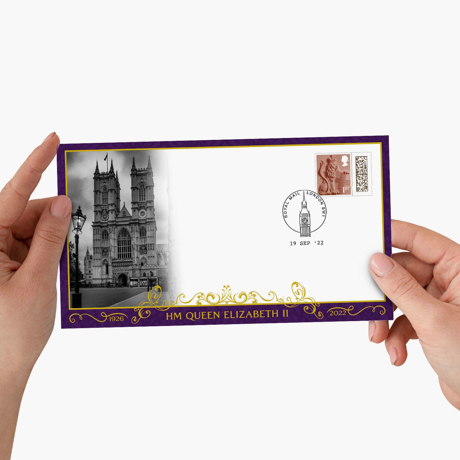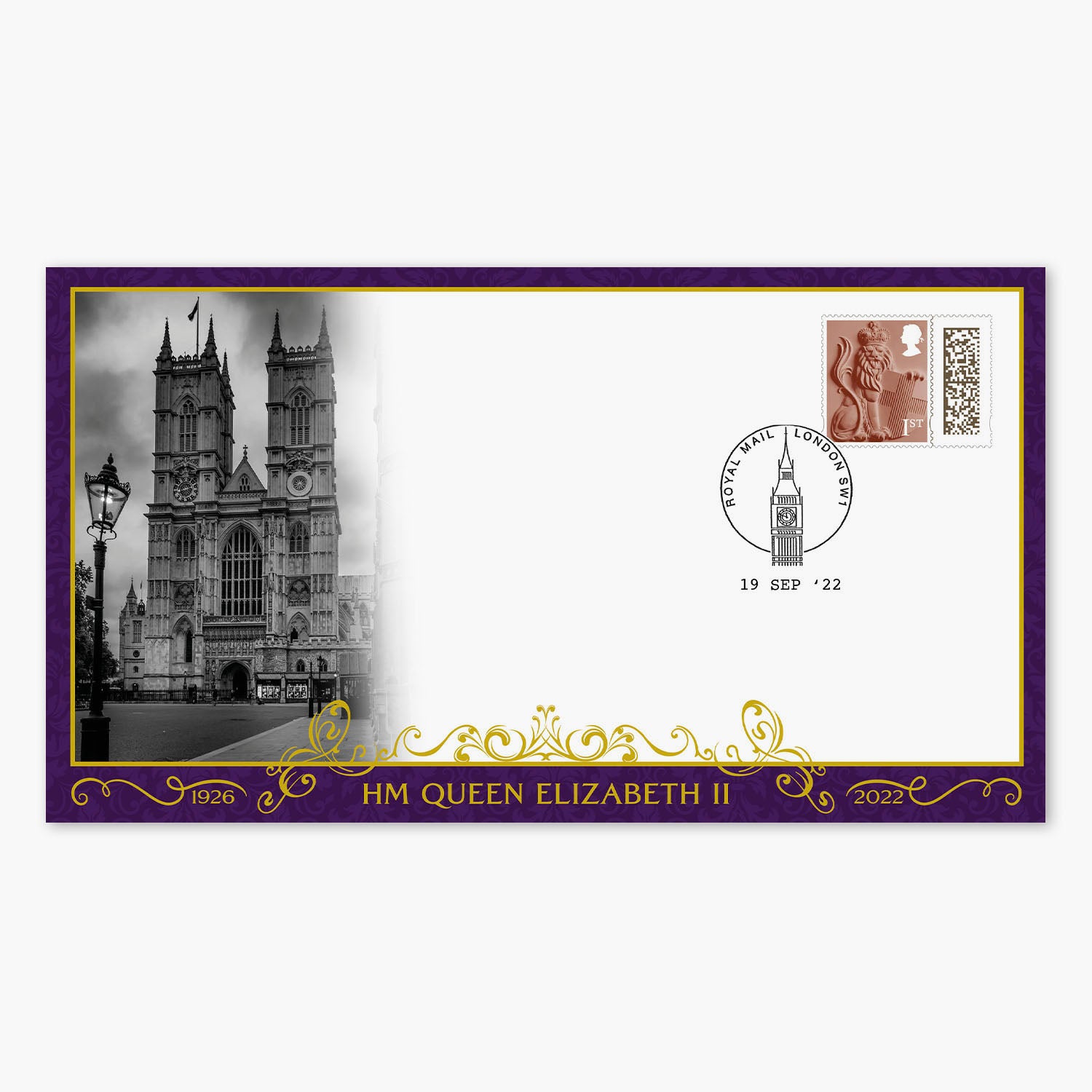 Featuring a 1st Class Single English Regional stamp. As well as a notable Elizabeth Tower and Big Ben postmark, dated 19th September when Her Majesty The Queen state funeral took place. Along with a beautiful design of Westminster Abbey.