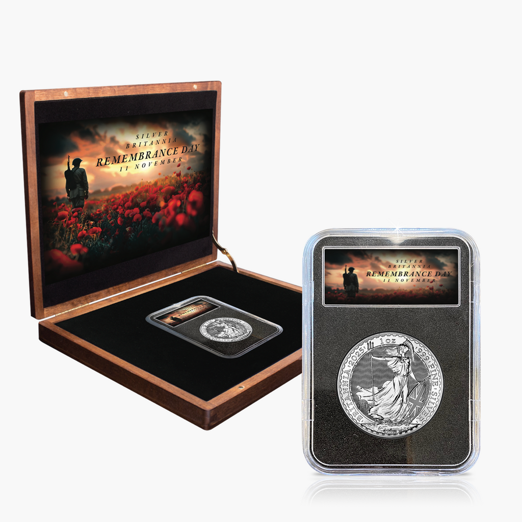 Struck in 1oz of .999 fine silver and finished to a proof standard, the Remembrance Day 2025 Silver Britannia Edition features Britannia on the reverse — a powerful emblem of resilience and unity. The obverse bears the official portrait of His Majesty King Charles III.