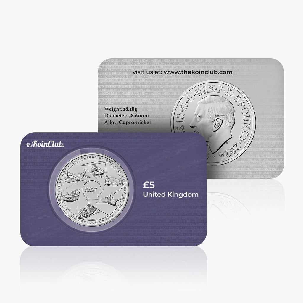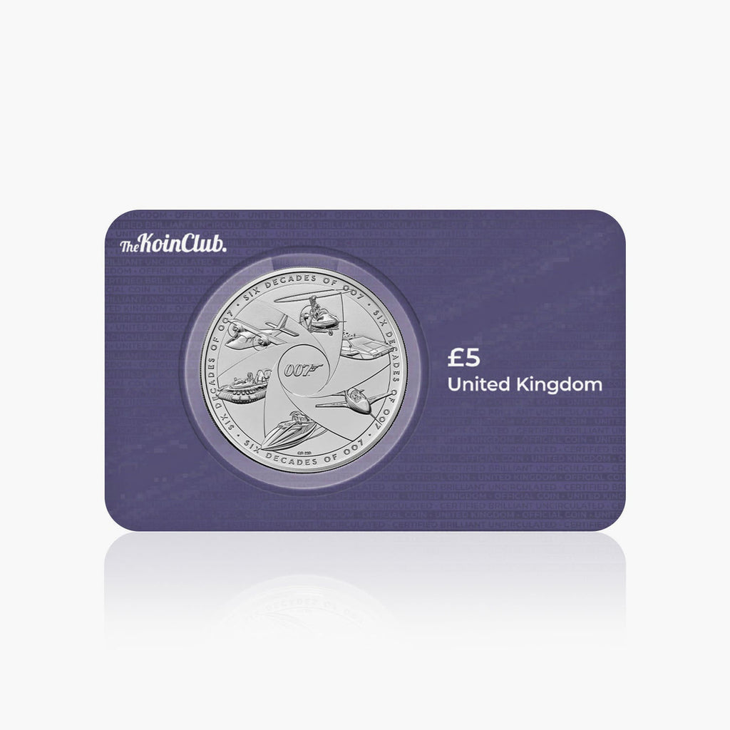 Introducing the Decades of Bond 2024 £5 BU coin, a striking addition to any collection, celebrating six thrilling decades of Britain’s most iconic spy, James Bond. Officially issued in the UK for 2024, this coin is a must have for any serious collector with an eye for rarity and sophistication.