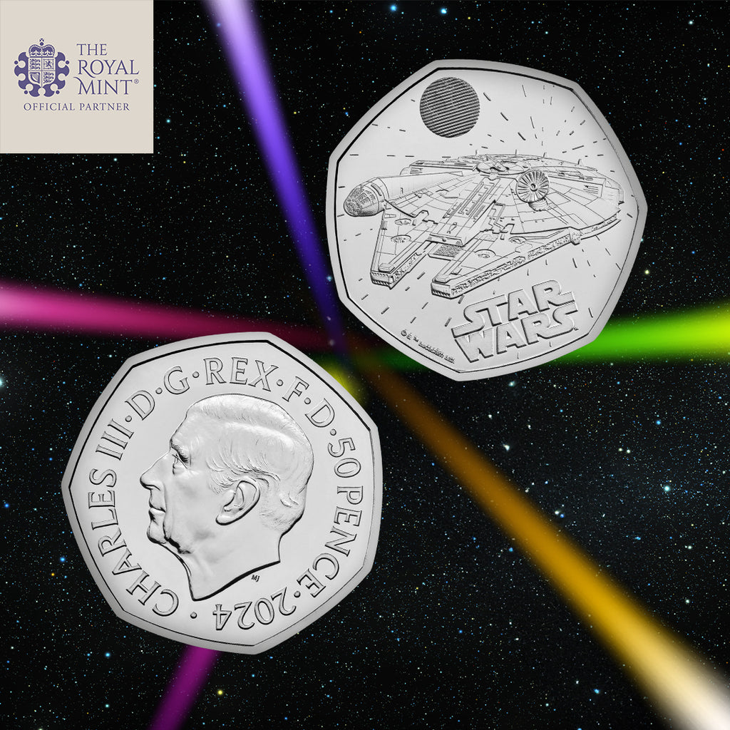 This is the first time a design inspired by the Millennium Falcon has featured on UK coins, and is the first release in a new four-coin collection inspired by the most iconic spacecraft in the Star Wars franchise.