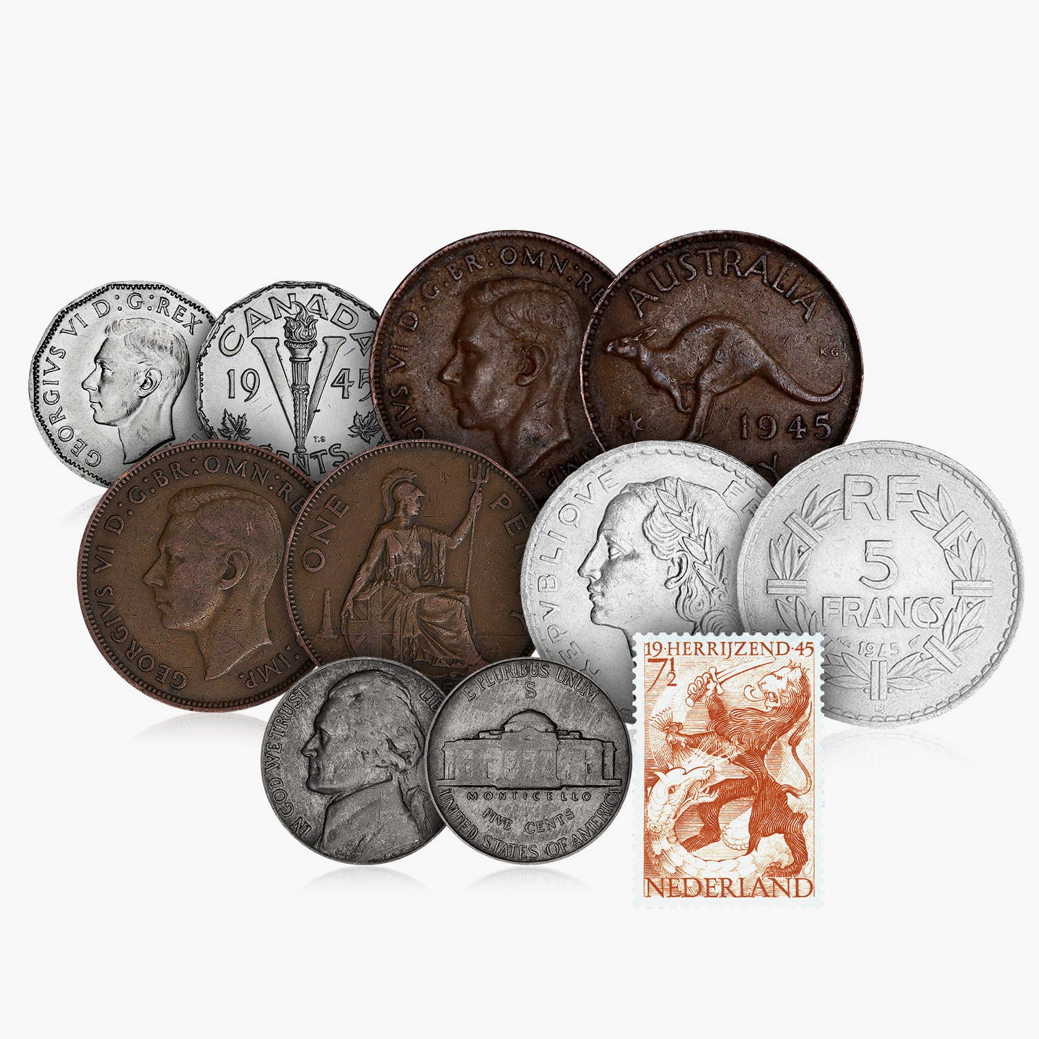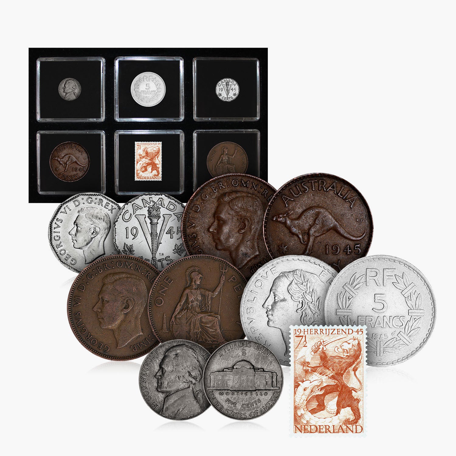This set features a collection of authentic coins from Allied nations that circulated during the Second World War. Each coin reflects the history and resilience of the nations that stood together to achieve victory.